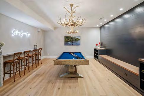 Completed in 2021, the 6,000+ SF oorplan features impeccable craftsmanship, custom millwork, ultra- ne nishes and Restoration Hardware furnishings and décor throughout. The main level boasts 12’ ceilings with beautiful wood accents, European oak oors, heated oors, 8‘ solid core doors, custom wall paneling, and automatic blinds.