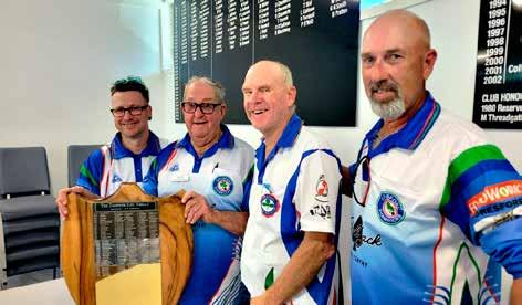 While the day will be remembered for camaraderie and fun, the record books will show that the very useful Dungog team of Stephen Jones (lead), Gary Newman (#2), Paul Robards (#3) and Johnny Middlebrook (skip) were worthy runners up. In normal circumstances they would probably have won but for the star-studded Gresford line-up: Keith Litchfield led with sharp openers; the boiler room men, Danny Ross (#2) and Danny Maudlen (#3), piled on the pressure; and Glynn (with one silent ‘n’) Phillips at skip finished off with precision. This writer can attest having been on the receiving end of a hiding.