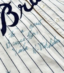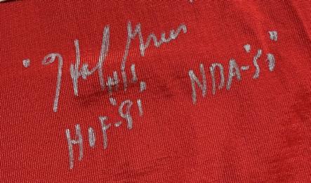 user from GFA through the service shall create any warranty not expressly made herein. GFA LETTERS OF AUTHENTICITY ARE ONLY ISSUED TO THE ORIGINAL PURCHASER. GFA RESERVES THE RIGHT TO ACCEPT OR REJECT ANY AND ALL BIDS OR BIDDERS. Grey Flannel Auctions is not responsible for computer or human error(s), which may result in customer dissatisfaction. We reserve the right to accept or reject any and all bids or bidders. The term “Photo-Matched” in this sale is used when an item has been matched to a photograph of the player using that said item and/or the item has been researched extensively to specific photos and it cannot be argued that it is not the specific item. It is understood that this is just the opinion of our authenticators and is not a guarantee that the item is, in fact, the identical item depicted in the photo. Only items that have been “PhotoMatched” by Grey Flannel Auctions, its affiliates, or by third-party authenticators (as discussed below) shall carry that express designation. Items without such express designation have not been “Photo-Matched” by Grey Flannel Auctions, its affiliates, or by a third-party authenticator and are not represented by Grey Flannel Auctions to be “Photo-Matched” or verified. Bidder expressly recognizes, acknowledges, and agrees that Grey Flannel Auctions is not responsible for, does not endorse, and has not independently verified the validity or accuracy of any third-party authenticators included in the item descriptions, and makes no representations regarding the validity of any third-party authenticator’s determination that an item has been “Photo-Matched.” Bidder further recognizes, acknowledges, and agrees, to waive, release, and relinquish Grey Flannel Auctions, and its affiliates, including, but not limited to Photo Matching & Grading, Inc., from any liability, claims, or causes of action relating to the negligence, errors, omissions, mistake, misrepresentations, or misconduct of any such third-party authenticators. Bidder recognizes, acknowledges, and agrees that, before bidding, it is solely responsible for conducting its own due diligence and verifying the value and provenance of any item. GFA and the Consignor make no representations or warranties, express or implied, as to whether the purchaser acquires any copyrights, including but not limited to any reproduction rights in any property. GFA and the Consignor are not responsible for errors and omissions in the printed catalog, online catalog or any supplemental material, or in regard to the failure of the auction program/software to execute any bids on behalf of the bidder.
