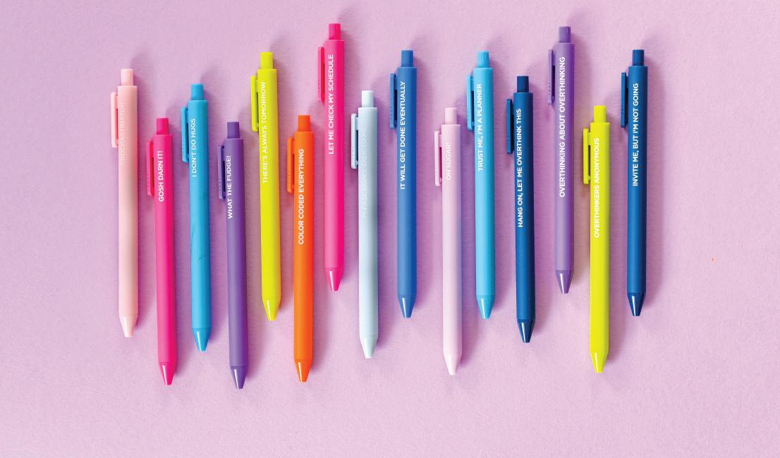 Jotter pens have a soft touch surface with a fine point gel tip. Pen Sets come packaged in a cello sleeve with a backer information card. Pens are imported and printed in the USA. PENS: 5.3”
