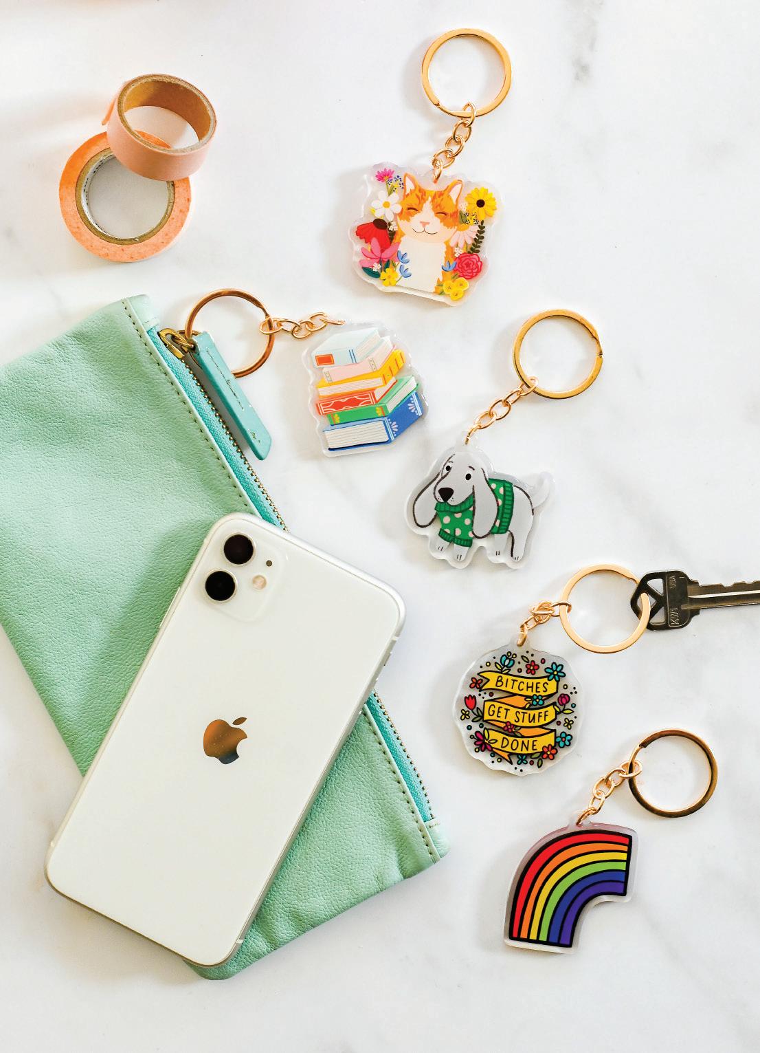 key chains PRICE : $4.50 / MOQ : 6 PER STYLE = BEST SELLER KY002 CAT WILDFLOWERS KY005 DOG SWEATER KY004 BITCHES KY001 RAINBOW KY003 BOOKS 50 WWW.GREYSTREETPAPER.COM/PAGES/WHOLESALE