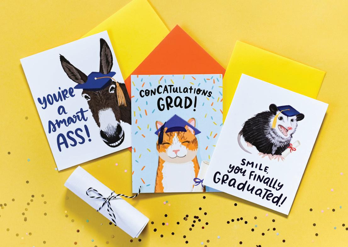 GREETING CARDS GC1231 SNAILED IT GC1153 DUCKING GRAD CONGRATS & GRAD PRICE : $2.50 / MOQ : 6 PER STYLE = BEST SELLER GC1233 SMART ASS GRAD GC1417 CAT GRAD GC1416 OPOSSUM GRAD 15 NEW! NEW! ALYSSA@GREYSTREETPAPER.COM