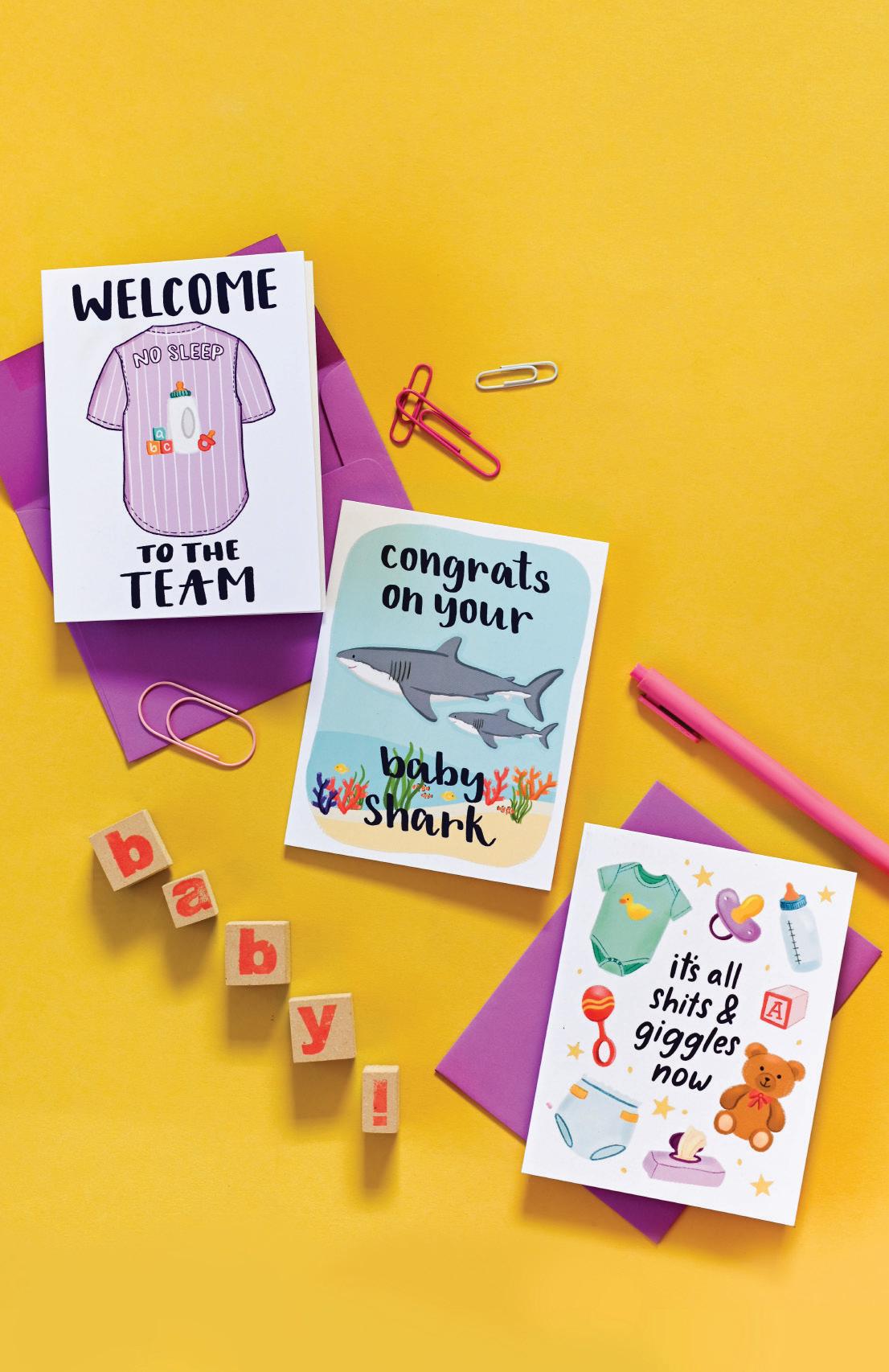 GREETING CARDS BABY & WEDDING PRICE : $2.50 / MOQ : 6 PER STYLE = BEST SELLER GC1418 SHITS & GIGGLES NEW! GC1179 TEAM NO SLEEP GC1149 BABY SHARK *YELLOW ENVELOPE* 21 ALYSSA@GREYSTREETPAPER.COM