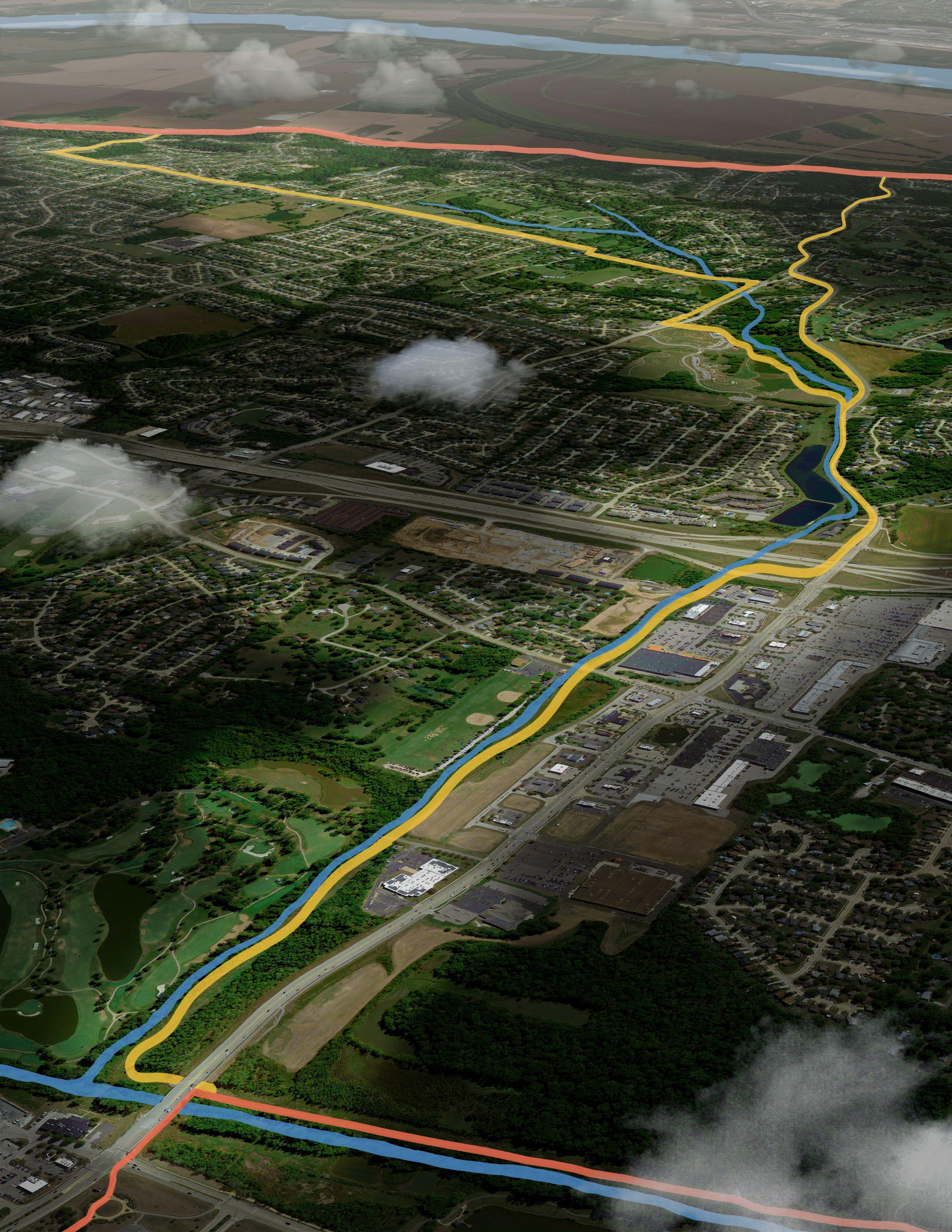 The following Land Use and Land Cover maps are just a few examples of the analysis that was completed by the planning team as part of the study. The top three land uses in the study included Residential, Parks/Open Space and Commercial which indicated that connections to these major land uses should be considered in the alignment options. The top three land cover conditions in the study area were identified as Grassland, Deciduous Woody Vegetation and Urban / Impervious Areas. The concentration of woodland land cover is mostly in the south area and adjacent to the Dardenne Creek in the north. The more developed urban/impervious areas are north of MO-364/94.