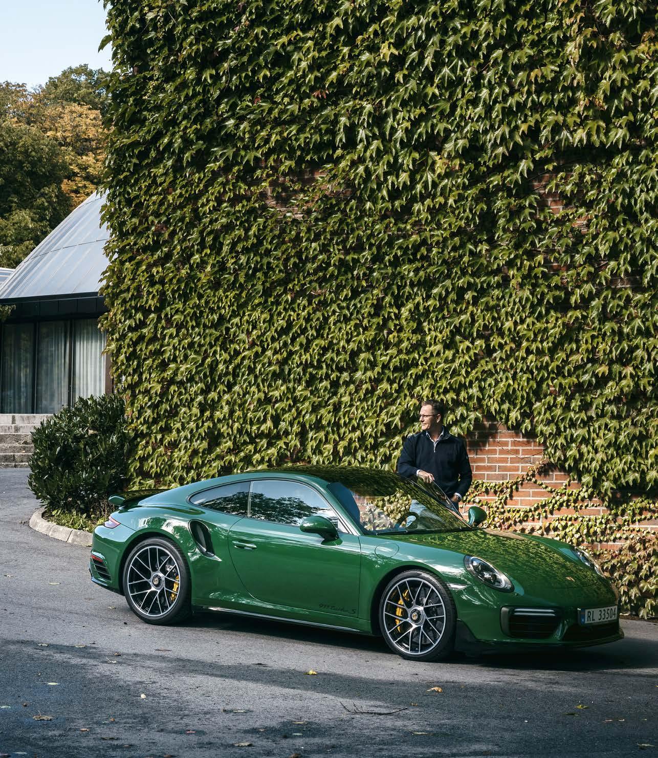 Om det er noe han ikke har eid og ønsker seg? – Grønne biler fascinerer, og en 993 Turbo står på listen. I grønn. Det gjør også en ur-911 fra 1965 som er perfekt for historisk racing. Det er viktig å ha tid til å bruke bilene også, understreker han. For eksempel blir jeg like imponert hver gang den rubinrøde 964 RS-en blir luftet. Den er så direkte i alt den gjør at selv den gule GT4-en ikke når opp i sammenlikning.