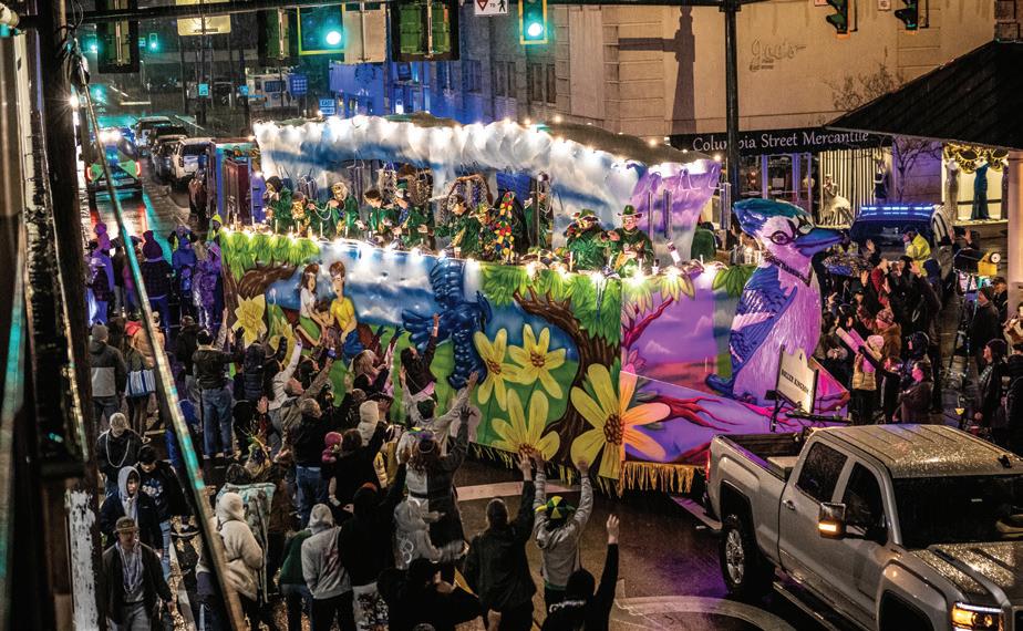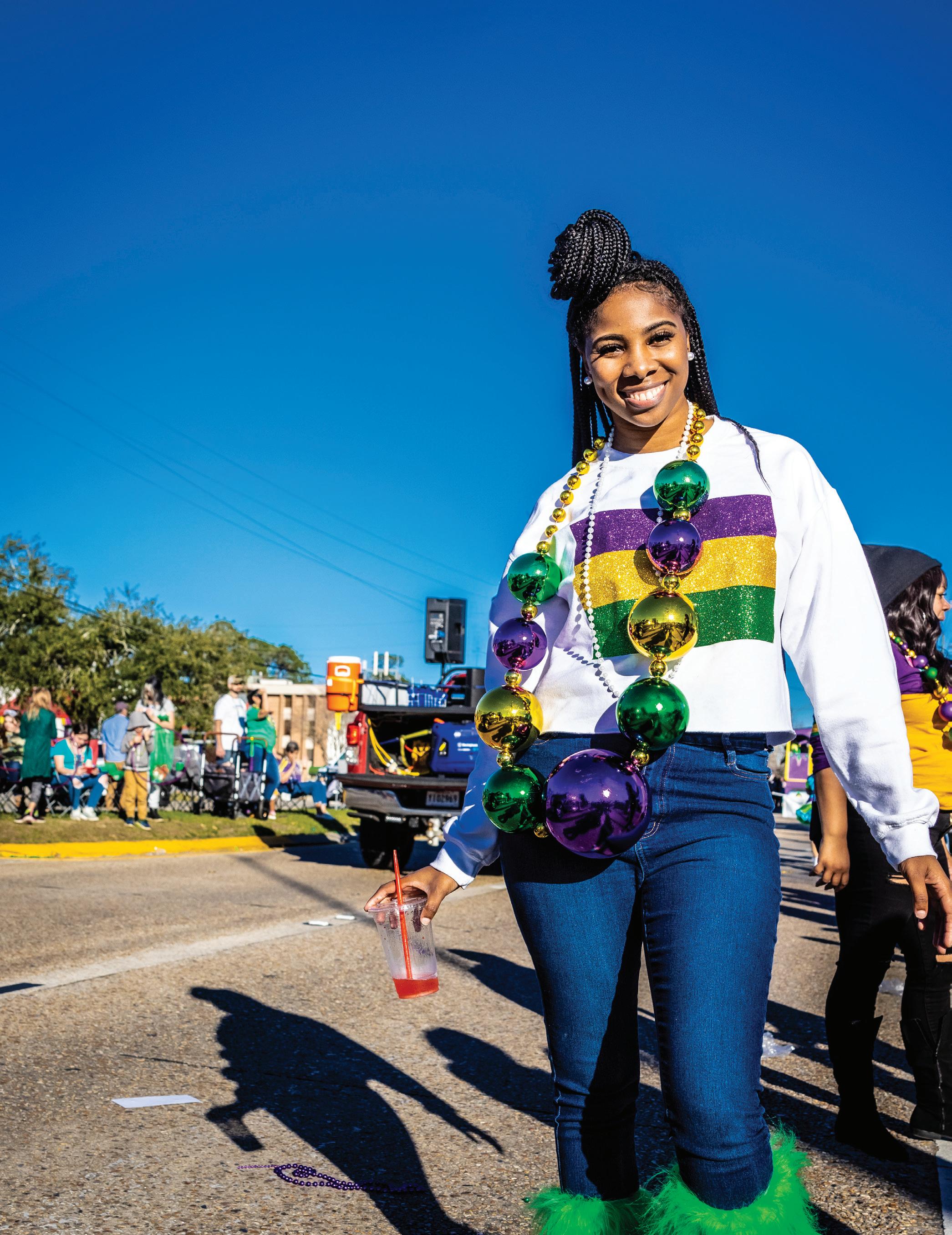 And, of course, we cannot forget the lively celebration of Mardi Gras (page 34). The Northshore offers family-friendly festivities where residents and visitors come together to revel in the spirit of this beloved tradition. From the spectacular parades of the Krewe of Dionysus in Slidell to the whimsical Mystic Krewe of Mardi Paws in Mandeville, there is no shortage of colorful floats, elaborate costumes and boisterous energy. Mardi Gras on The Northshore is a time when our communities showcase their creativity and hospitality, welcoming all to partake in the celebrations.