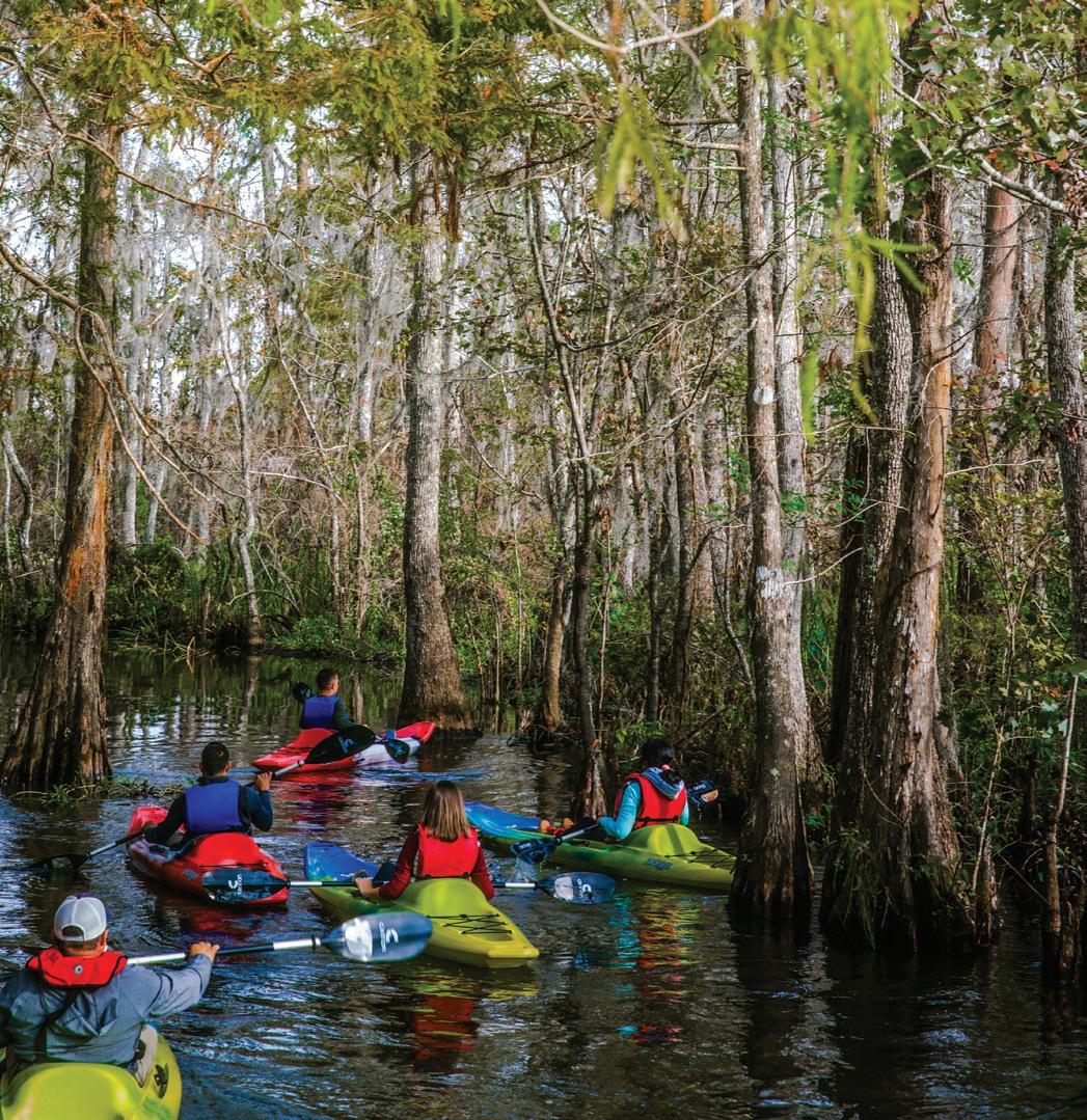FROM THE QUAINT AREA KNOWN as Olde Towne Slidell (see related story on page 12) to the outskirts of the city where the pristine Honey Island Swamp can be found, Slidell has much to be discovered. Hop aboard a swamp tour to get up close to the local wild fauna. Stroll through nature at Camp Salmen Nature Park or launch a boat or kayak on Bayou Bonfouca at Heritage Park. Charter fishing trips depart from the Rigolets Marina and offer an opportunity to fish like a local. Charter captains strive to find the best fishing spot on Lake Pontchartrain and its surrounding canals. Catch redfish, black drum, speckled trout, flounder, sheepshead and more. Can’t make a chartered trip? Enjoy a taste of Louisiana seafood at local restaurants.