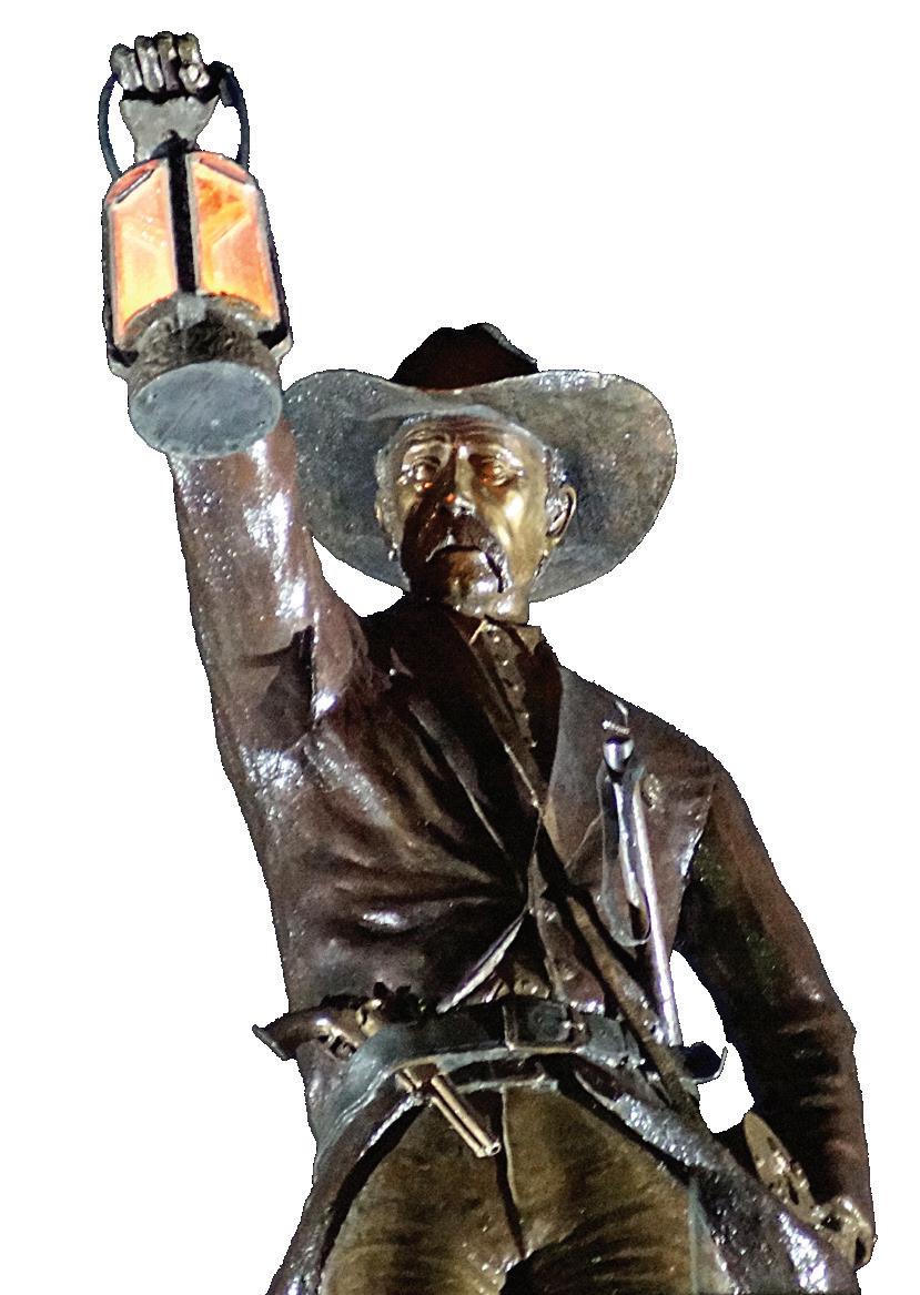 Grapevine’s 75-foot-high Clock Tower Glockenspiel features Nat and Willie, two 9-foot tall Would-Be Train Robbers who emerge several times daily.