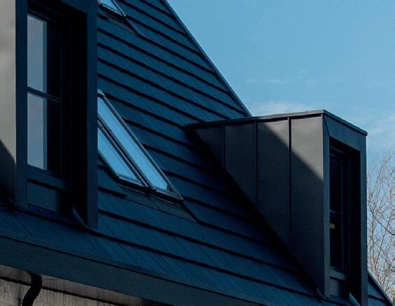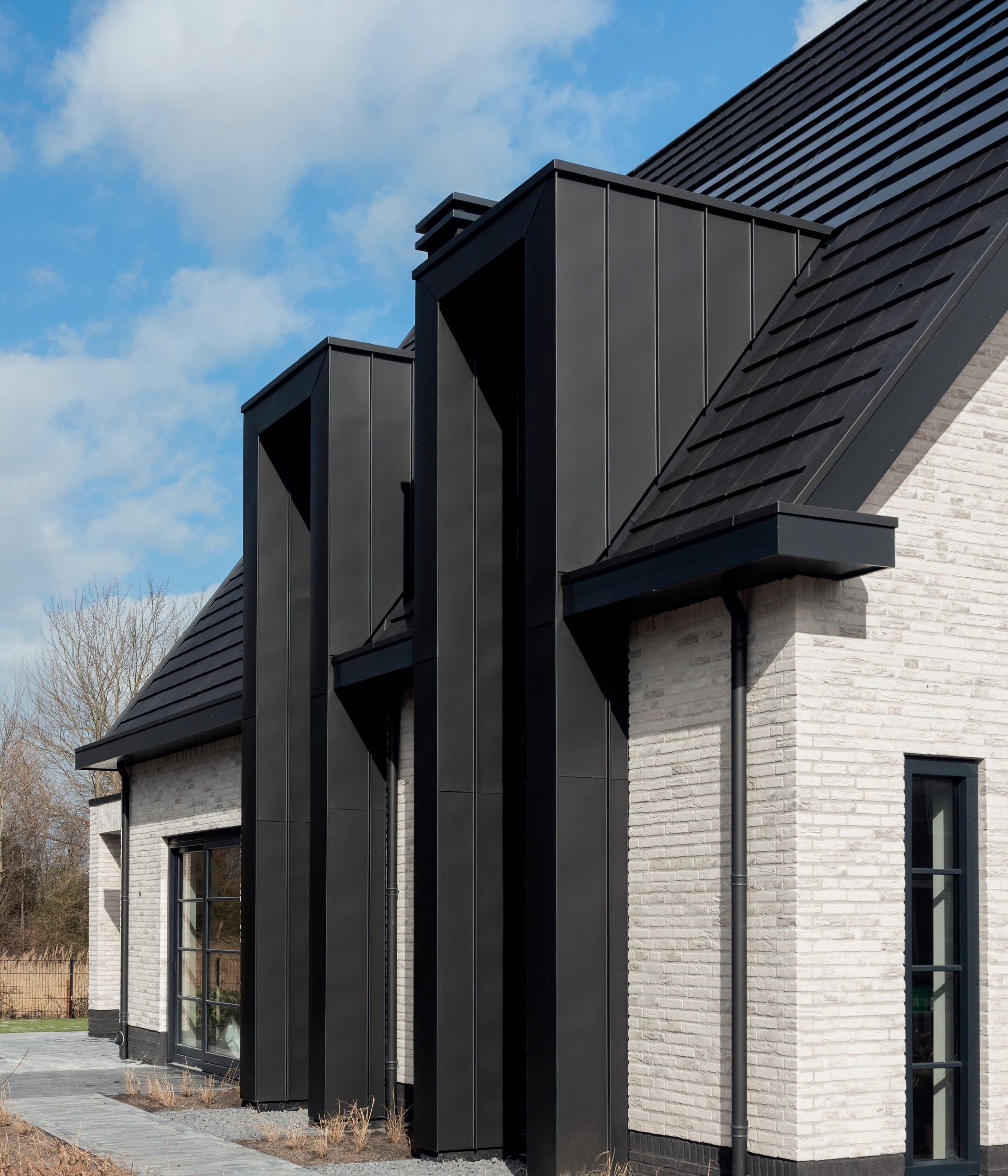 De hemelwaterafvoeren zijn uitgevoerd in anthra zink!