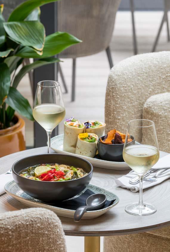 Nutritious dishes include our turmericspiced salmon wrap, chilli beef Asian broth and sweet treats – the beetroot brownie is a firm favourite.
