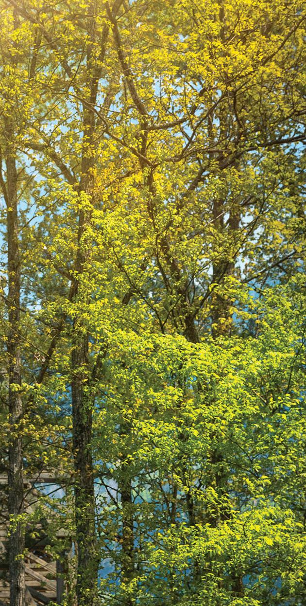In nearby Pigeon Forge, Dollywood includes a range of attractions, from world-class roller coasters to live musical entertainment and artisan demon strations of glassblowing, metalsmithing and other crafts. The park’s many seasonal festivals — like the spring Flower & Food Festival or fall Harvest Festival — add extra flair to its always beautiful grounds. Pigeon Forge is also home to a brand-new attraction: Wildside, opened by the owners of Anakeesta, is an adventure park offering biking trails, off-roading and zip lining. It’s also home to the country’s longest zip line.
