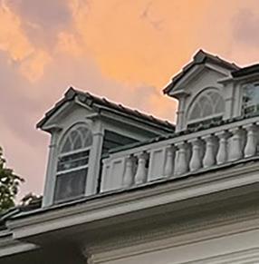 hold more than 500 people. A carriage house next to the pavilion has party lights and gives off a more patio-esque vibe, surrounded by trees and vegetation. The backdrop is the three-story conservatory building.