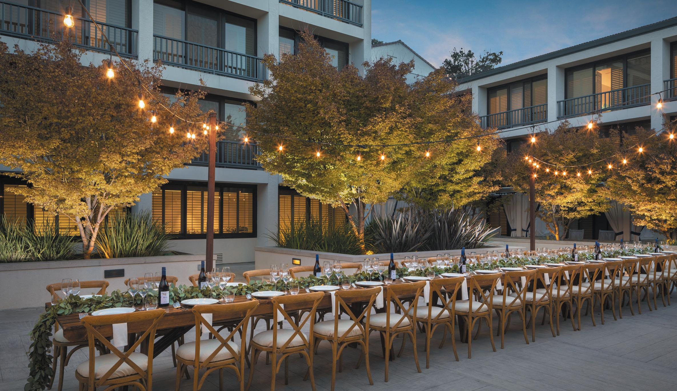 The Ace Room and Backcourt can seat 22 inside and 36 on the outdoor patio. It has TV and A/V access, and the private patio includes heaters and misters.