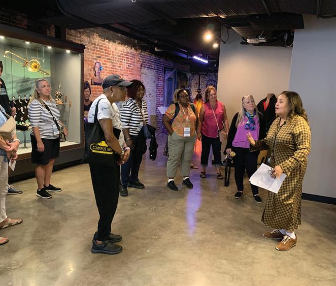 The second day of the trip began with a tour of Huntsville’s U.S. Space and Rocket Center, the most visited attraction in Alabama. From there, the group went to Huntsville Botanical Garden, where they enjoyed a tour of the beautiful grounds and an on-site lunch. Next was a tour and a cigar-box guitar lesson at Lowe Mill ARTS & Entertainment, another industrial reuse venue. The group ended their time in Huntsville with a visit to the historic home and village overlooking the city at Burritt on the Mountain. From there, they made the two-hour journey south to Tuscumbia, where they enjoyed a delicious dinner — and live music from a pair of Muscle Shoals all-star performers — at Rattlesnake Saloon, a unique restaurant located inside a cave. They ended the day at Renaissance Shoals Resort & Spa, a newly renovated property honoring the area’s musical heritage.