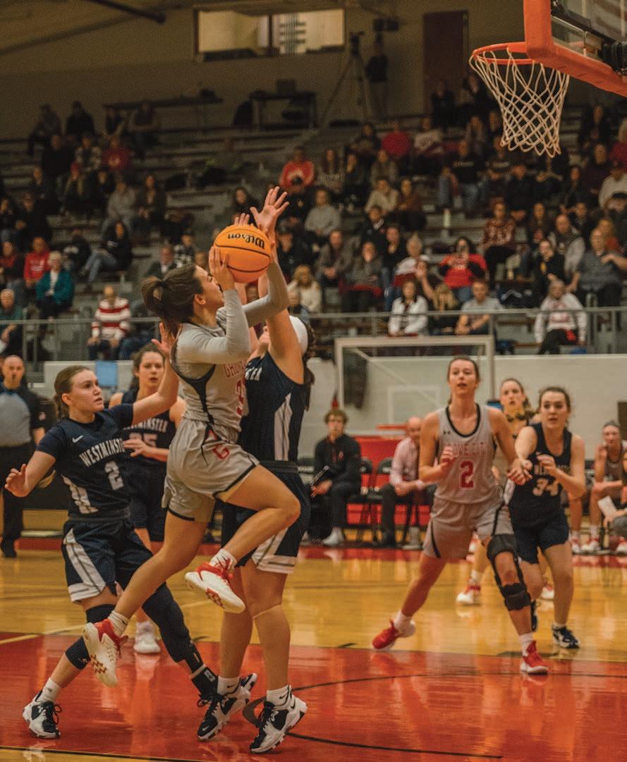The Wolverines bested conference rivals Westminster last Saturday in the Grove City Arena. A dominant fourth quarter helped the home team close out their eleventh conference victory with a final score of 71-51.