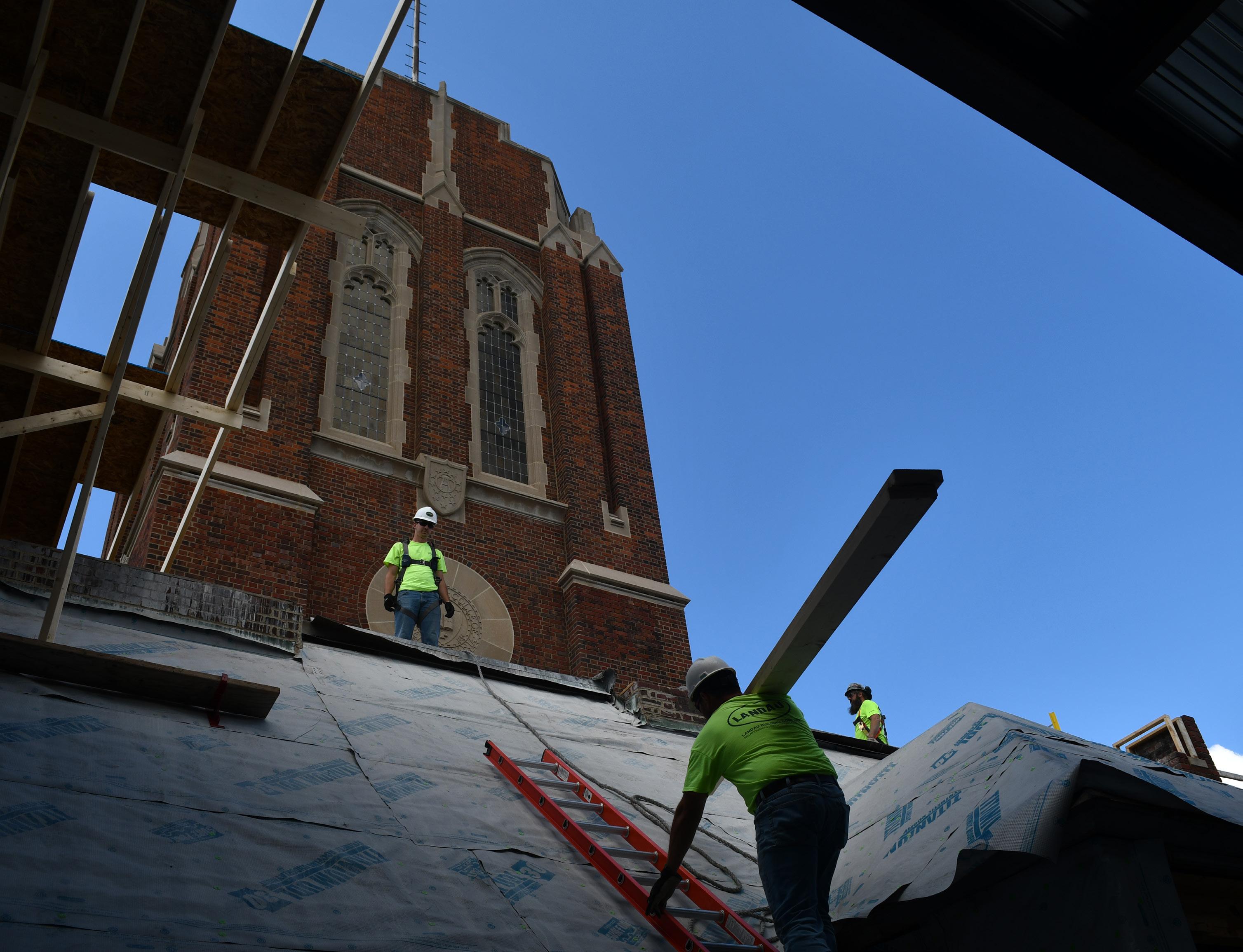 The $48 million project will continue next year with the completion of the connector, carpentry, flooring, furniture and interior paint on the interior and a new clay tile roof, walkways, landscaping and lighting on the exterior.