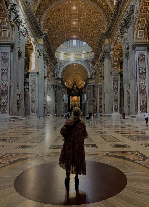 In my travels with the ACI program in Italy and Greece we visited Rome several times. On entering St. Peter's Basilica, I was blown away by its magnificence. I wasn't the only one. An older lady limped her way to the very back center and stood absolutely still for what felt like ages. She was taking it all in: Bernini's Altar, the Pieta, the 450-foot ceilings, the detailed mosaics, and gold accents.- Caitlin