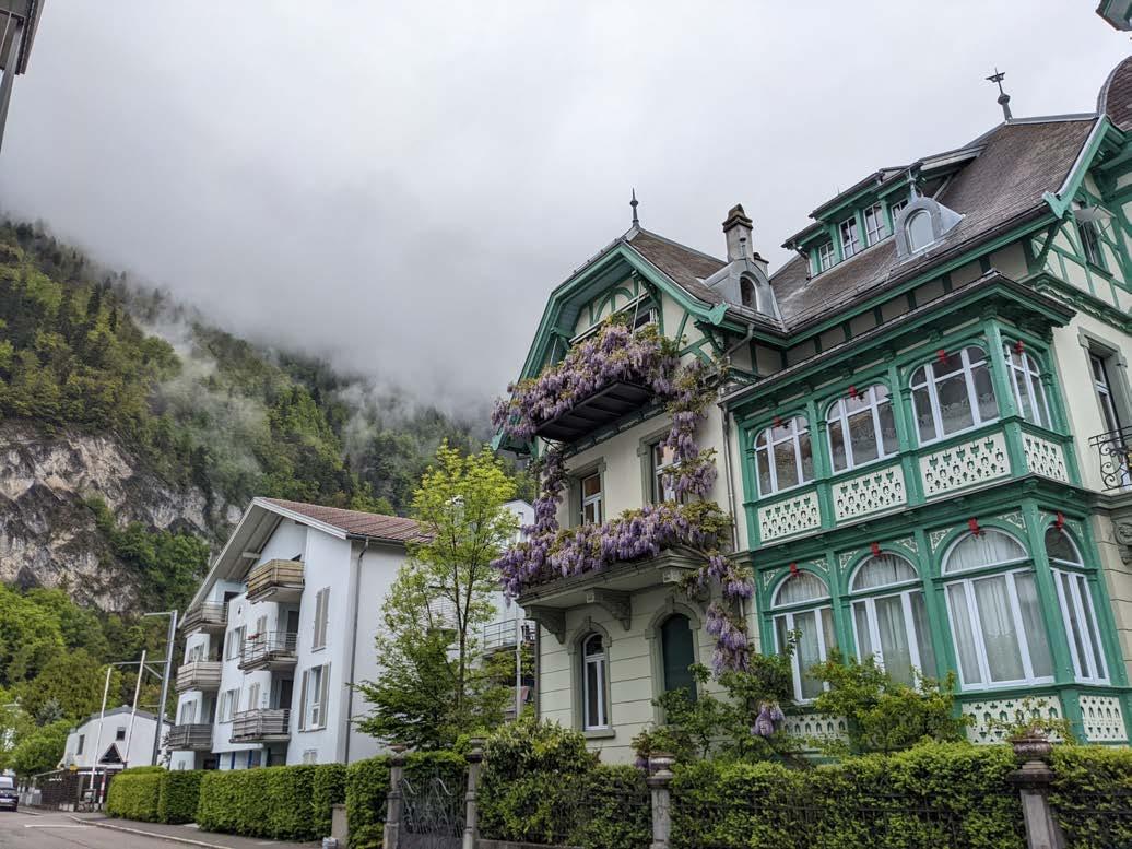 I took this picture on a rainy day in Interlaken, Switzerland. I had set out from my hostel on a grand adventure, with the goal of summitting Mt. Augstmatthorn. The 17-mile climb to the snow-covered peak would give me a view of the entire Swiss Alps. On my way to the trailhead, I spotted this wisteria-bestrewed house with the base of the mountain I was about to climb in the background. - Logan