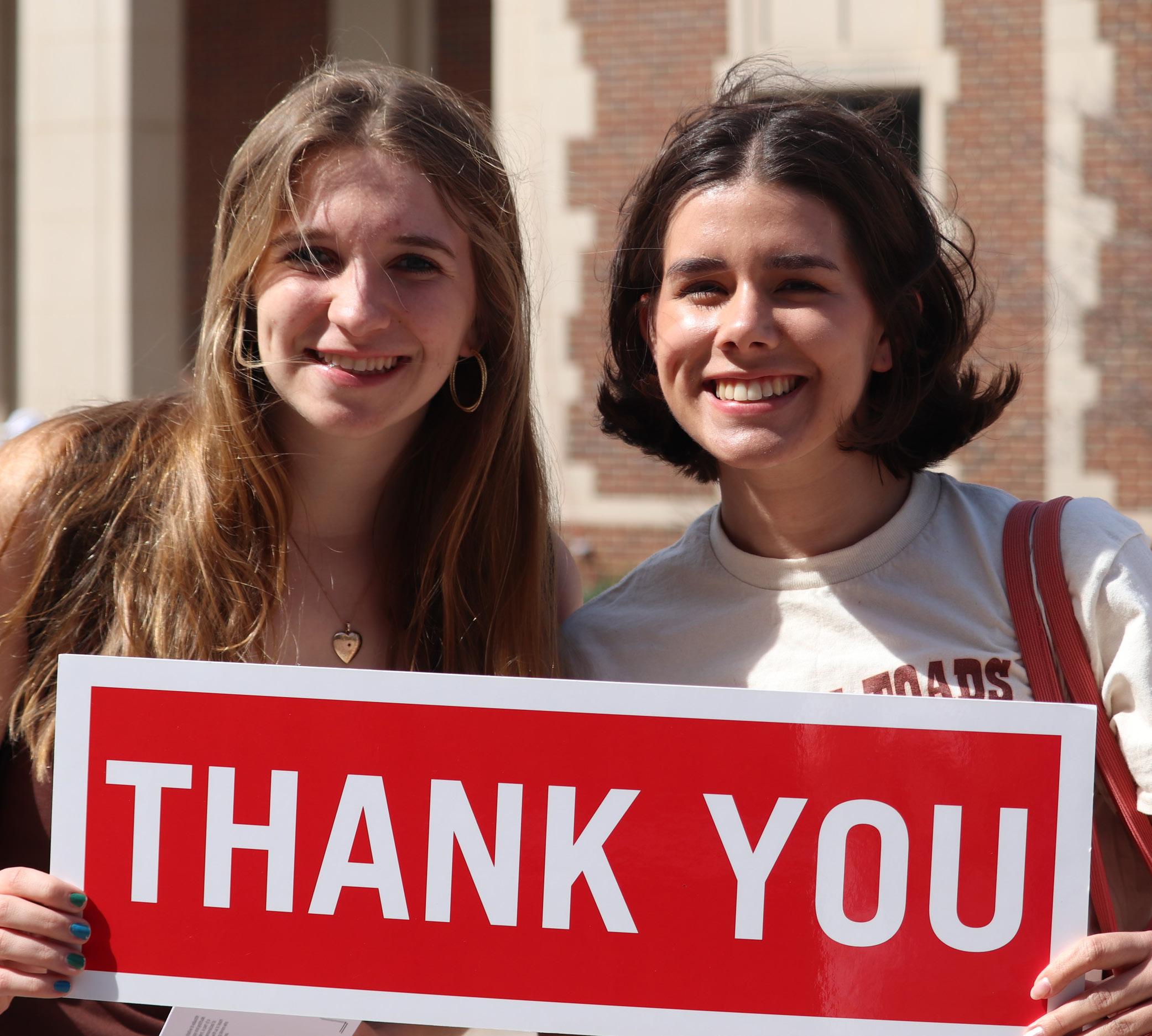 Sophomores Maren McIntire and Cecilia Landis joined their peers in writing personal thank you notes to the College’s donors in SHAL atrium on Wednesday’s ‘Thank A Donor Day.