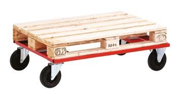 Stabil pallevogn utstyrt med 2 faste og 2 svingbare massivhjul 200 mm.