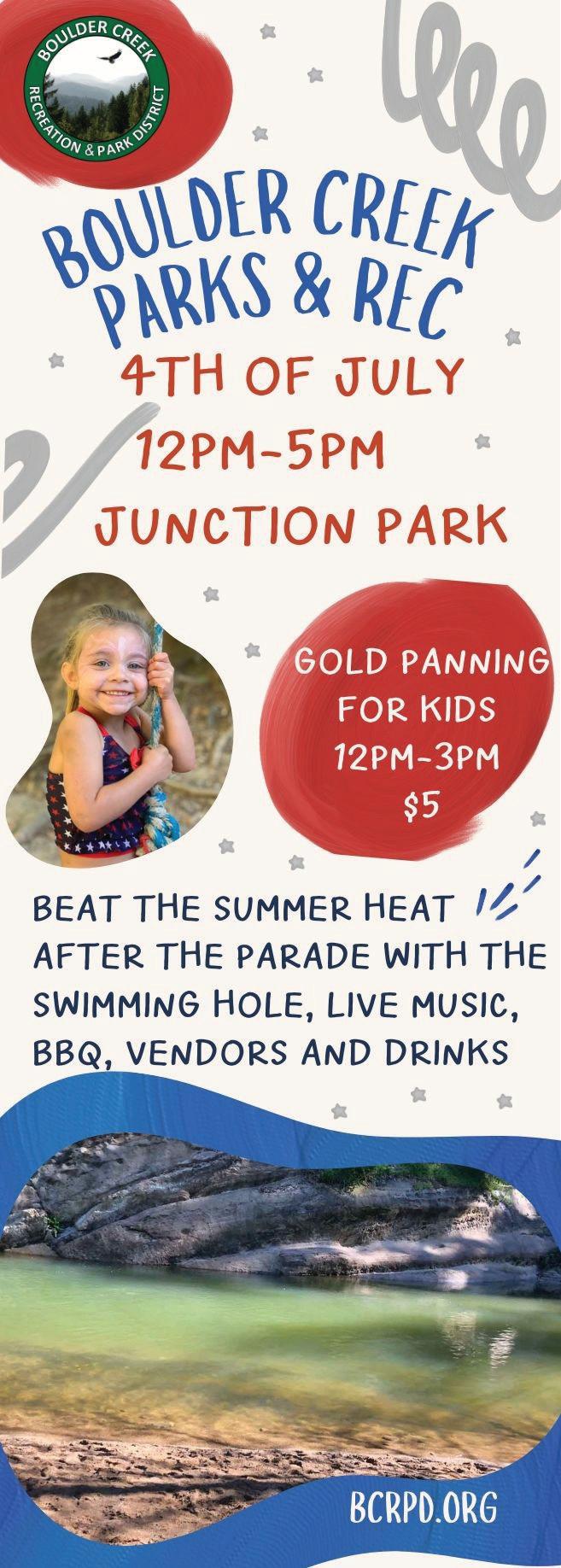 Celebrate the Fourth of July in Boulder Creek. Enjoy a parade, a block party with vendors, barbecue and live music! bcba. net/events-1/july-4th-parade-and-blockparty