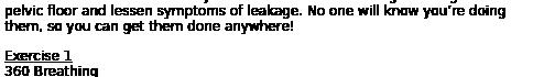 These two exercises done daily for 6-8 weeks will encourage healing of the pelvic floor and lessen symptoms of leakage. No one will know you’re doing them, so you can get them done anywhere!