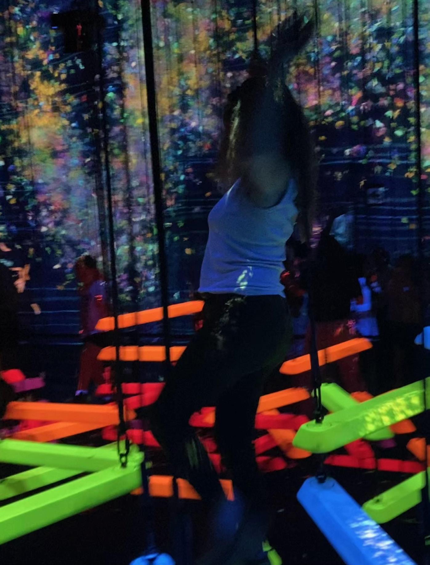 Ainsley is wearing unique jewelry gifted and thrifted, and her white fluffy jacket is from a clothing swap. The baby yellow V-neck tank and heather grey low-rise bootcut leggings are from Brandy Melville. Ainsley picked her outfit today because it was comfy, and the jewelry was her way of expressing herself. Ainsley is very proud of her new ring, which she got from a pop-up market in downtown Santa Cruz. One fashion rule she loves to break is wearing gold and silver together. A must-have in the closet is a bomber jacket, they do a great job at keeping you warm and are still flattering, preferably a girly bomber jacket. I found inspiration in this outfit because even though it calls for cold weather and dark clouds doesn’t mean you can’t bring a little sunshine out yourself.