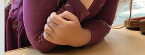 While seated, place hands around your ribs just above belly button level. Take a deep breath making sure your hands separate a little to show breath