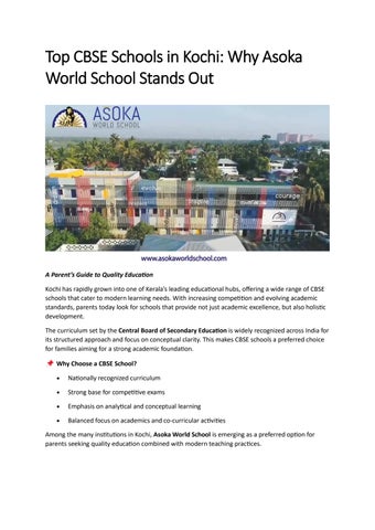 Best CBSE Schools in Kochi 2026 | Why Asoka World School is the Top Choice for Parents