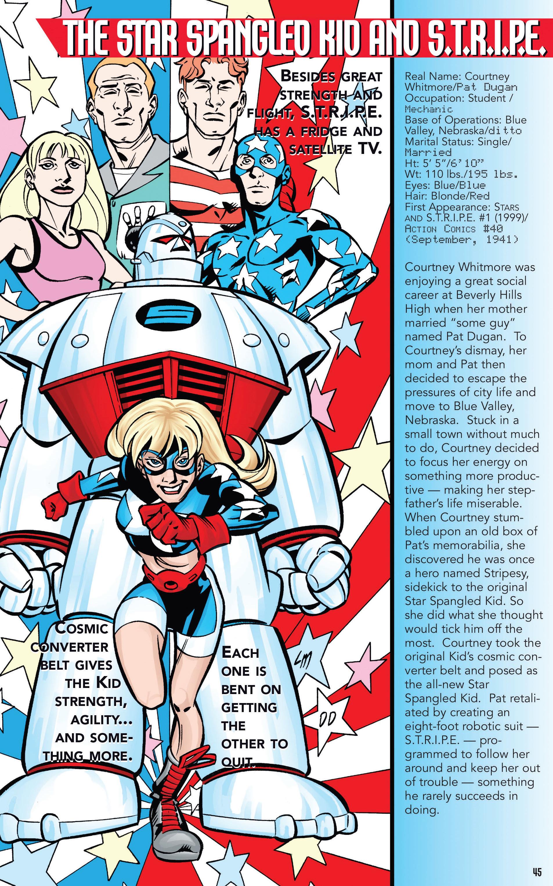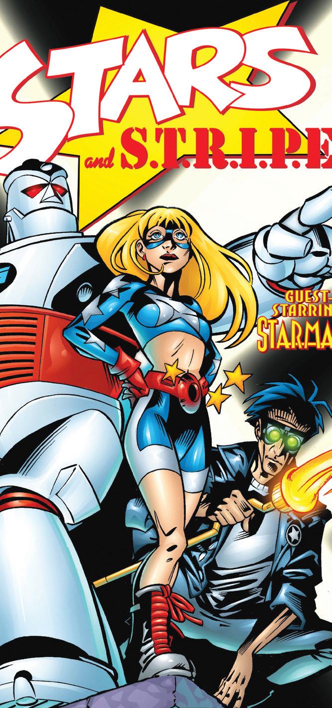 Stargirl (Courtney Elizabeth Whitmore) is an American teenage superhero created by Geoff Johns. The first appearance of Stargirl was in "DCU Heroes: Secret Files and Origins #1" in February 1999. From July 1999 to December 2000 he wrote Stars and S.T.R.I.P.E. She is a gymnast and cheerleader who moves from California to a Blue Valley, Nebraska and becomes a superhero. In some versions she starts as the new Star Spangled Kid and some she starts as Stargirl after finding either the cosmic converter belt or cosmic staff.