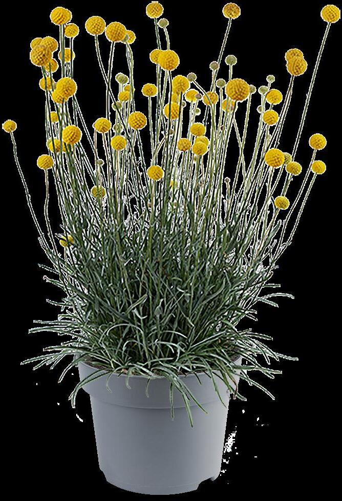 Trommelstokjes Craspedia ‘Golf Beauty’ - Ø 17 cm. Rode zonnehoed Echinacea ‘Lakota’Ø 19 cm.
