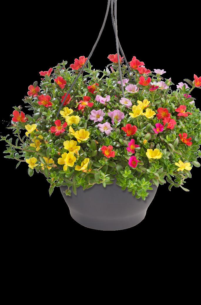 Portulaca grandiflora ‘Carnaval’ in hangpot - Ø 27 cm.