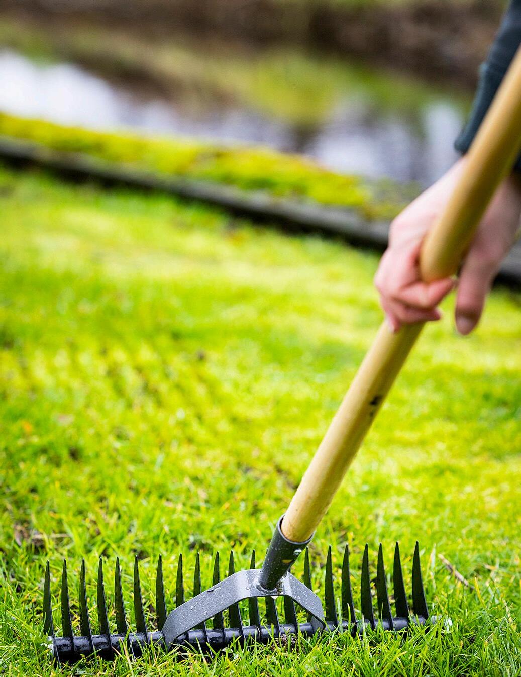 Ga eens flink met de verticuteerhark door je gazon. Het voelt niet zo liefdevol, maar dat is het wel! Het mos komt hierdoor los, waardoor het gras weer goed kan ademhalen.