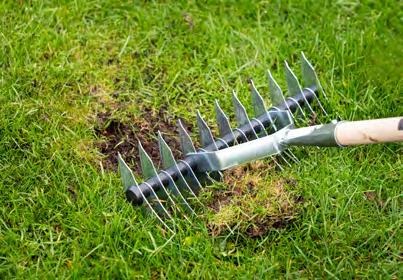 Maai eerst het gazon. Maak vervolgens de grond van de kale plek los.