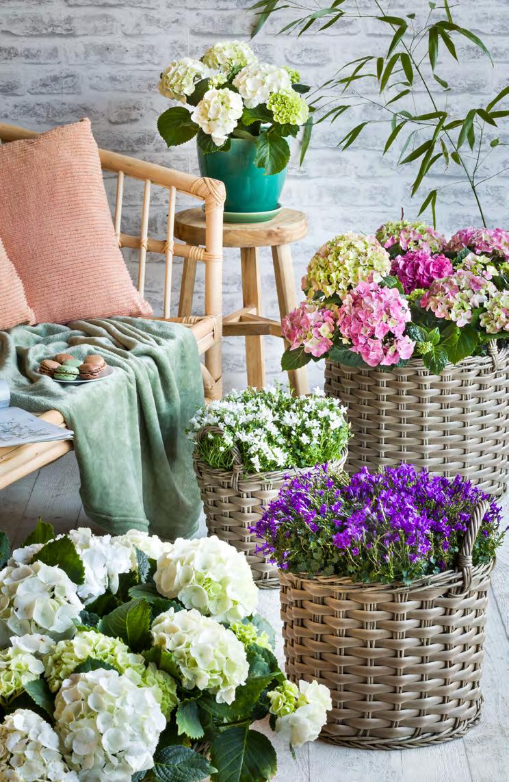 De lente komt eraan! Tijd om je tuin op te fleuren met kleurige bloeiers in manden en vrolijke potten.