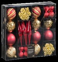 Kunststof. Glanzend, glitter en mat in verschillende soorten. Rood- of groentinten. Doos 46 stuks. 17.99 21.99