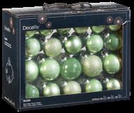 Glas. Glanzend, glitter en mat in verschillende maten. Diverse kleuren. Doos 42 stuks.