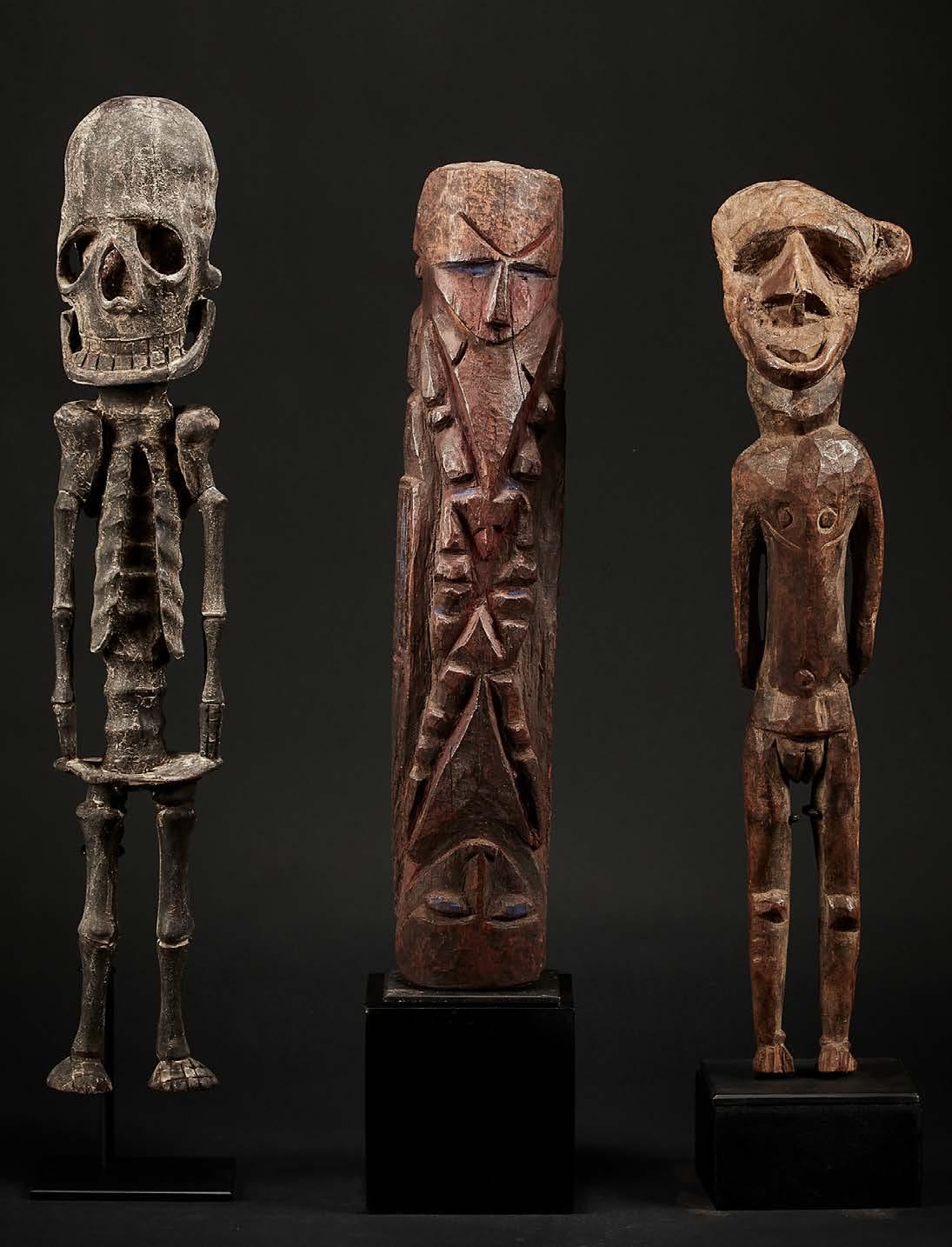 The simple strongly executed full figure of this dagger is outstanding. Two were collected in the 1960s, obviously by the same master artist. One, in perfect condition entered the Daalder collection in Adelaide. This one was broken and repaired in the village before its early collection. Early 20thC.