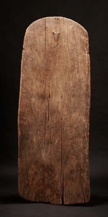 Multiple layers of pigment are visible, the last colours probably applied for a war shortly before it’s collection date. The back of the shield is smooth and worn and truly shows the ancient nature of this shield. Australian officers confiscated shields in early colonial days as part of policy to reduce tribal fighting, and this is quite possibly the case with this shield, that was then taken back to Australia as a “souvenir.”