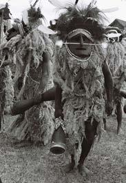 Eastern Highland Dancers with wood masks, bodies covered in forest lichen.