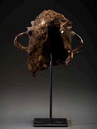 Early German explorers referred to these tall conical masks as “funeral masks”. But subsequent research clarified that they are used in initiation ceremonies performed during rites of passage marking the transition of young men into adulthood.