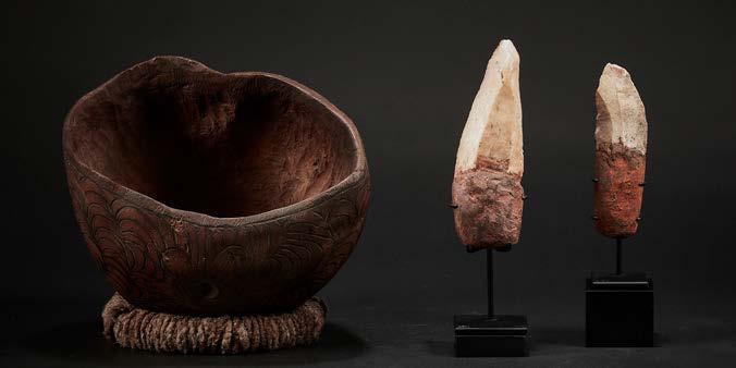 b) Rounded at both ends, this churinga displays delicate lines that form both squares and triangles over its surface. Western Australia. 19th/early 20thC. It was collected in the 1920s (but is much older) and entered Black’s Museum, Renmark South Australia, before passing to a Melbourne private collection.