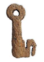 Com passa sovint, la torre mestra era l’edifici més alt i el més antic (probablement del segle XI), i al qual s’accedeix a través de diverses estances esglaonades en el recinte sobirà. Alguns d’aquests àmbits han estat utilitzats com a àrees de producció amb un vincle directe amb la cisterna superior. La troballa de diverses pedres de molí i un seguit de retalls en el sòl rocós indiquen activitats de molta amb tracció manual i un petit forn de calç en corrobora la funció productiva. La torre mestra al capdamunt del conjunt resumeix les transformacions arquitectòniques que la van afectar al llarg de quatre centúries, amb una base adaptada a la roca que conserva un angle recte per una banda i un perímetre arrodonit per l’altra. Tant l’estudi del material arqueològic com les estructures constructives reflecteixen una intensa ocupació militar durant el segle XV, que es contextualitza arqueològicament durant les revoltes remences i la guerra civil catalana a dalt, part visible de la cisterna amb volta apuntada, abans de la intervenció arqueològica // FOTO: Ernest Costa. PROCEDÈNCIA: Arxiu ‘les Garrotxes’. als detalls, una clau llobera de ferro, del recinte jussà; plat de pisa blava i daurada valenciana, amb escut central // FOTOs: bibiana Agustí i Anna Maria Puig.