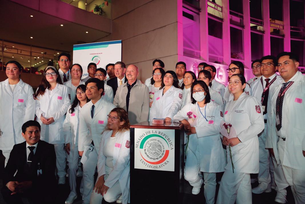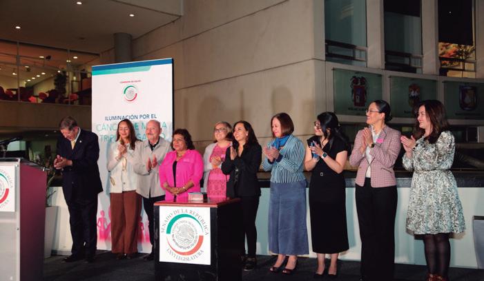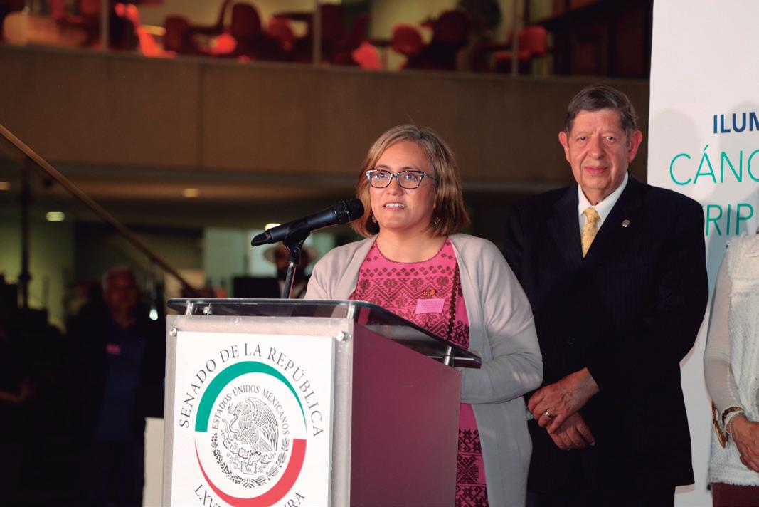Posteriormente, durante la iluminación conmemorativa del Senado, la Dra. Cabrera reiteró su compromiso con la causa. “La Sociedad Mexicana de Oncología puede servir como un vínculo interinstitucional para fortalecer a los tomadores de decisiones legislativas, apoyándolos con la parte técnica”, afirmó. También enfatizó que el problema del cáncer de mama requiere un enfoque humanístico y social. “Invito a que nosotros, que tenemos la capacidad de juntar las mejores mentes de México, podamos ayudarles en una toma de decisión prioritaria”, concluyó.