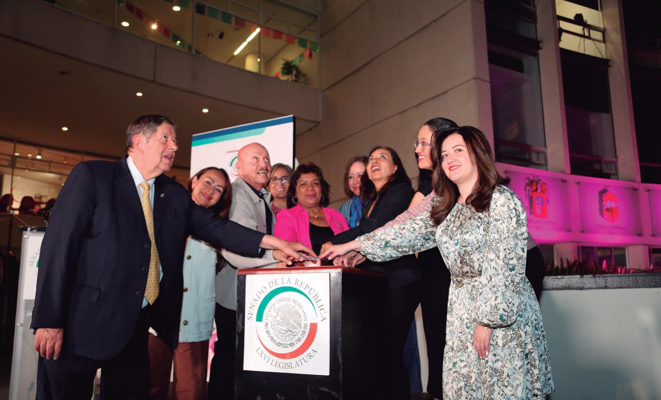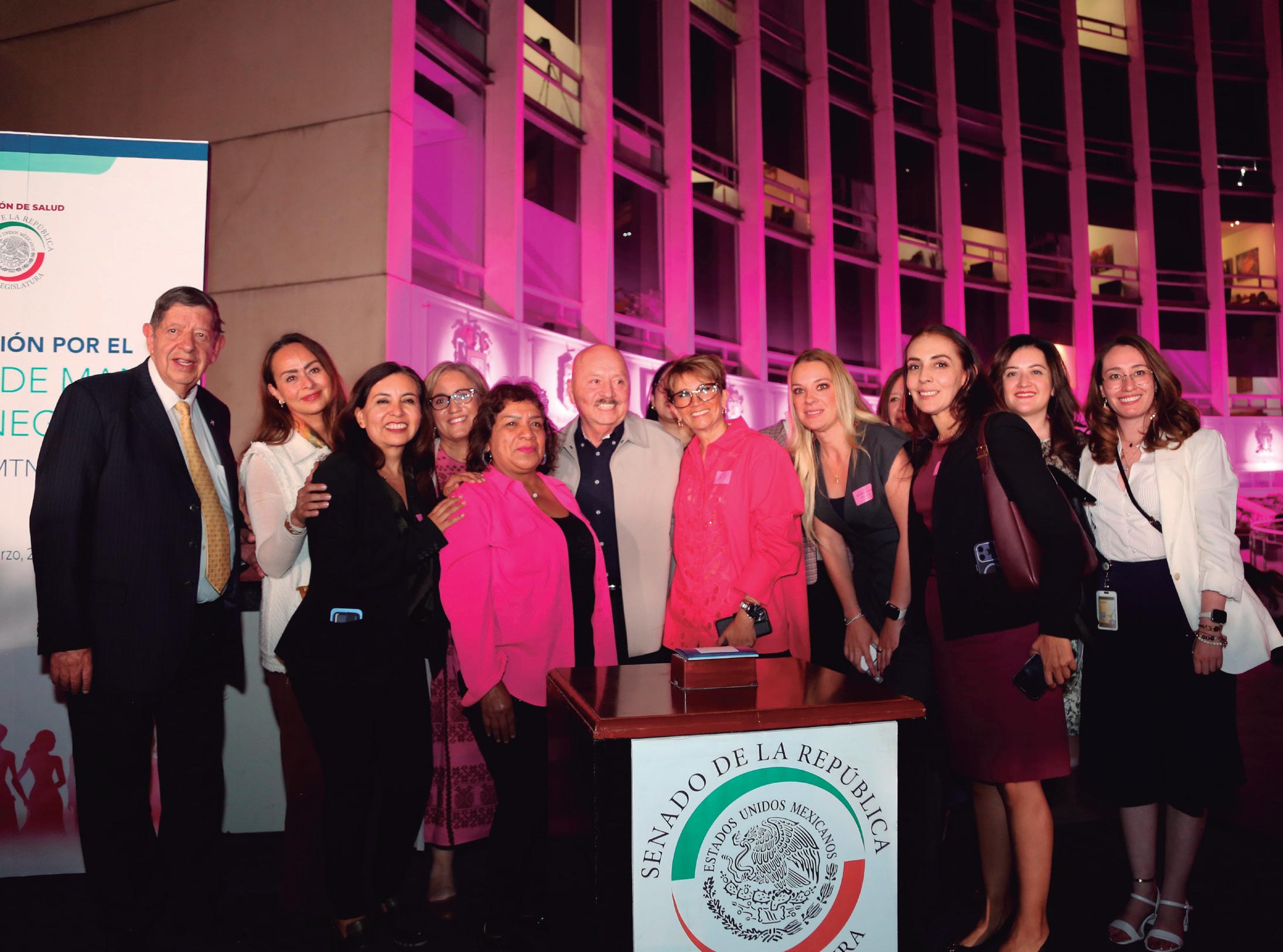 Como parte final de la jornada, el senador José Manuel Cruz Castellanos encabezó la iluminación de color rosa del Senado de la República, con el propósito de visibilizar el