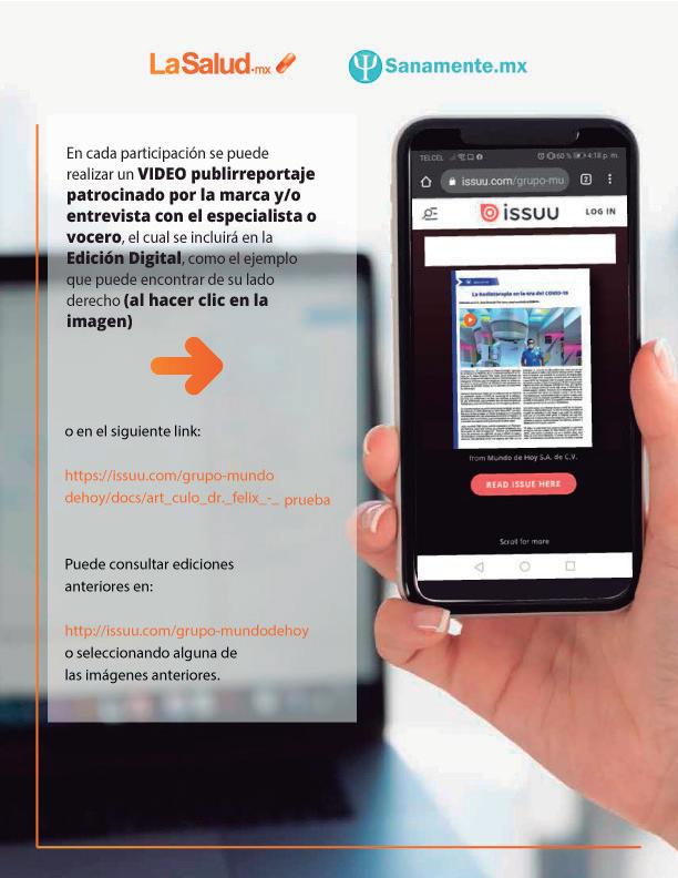 Las opiniones expresadas por los autores no necesariamente reflejan la postura del editor y de la publicación. La publicidad y la información de los anuncios son responsabilidad exclusiva de cada anunciante. Todos los Derechos Reservados: Queda prohibida la reproducción parcial o total de las imágenes y contenidos publicados sin previa autorización por escrito del Comité Editorial de LaSalud.mx