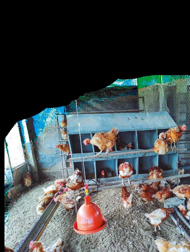 These are kept in 4 houses, with two or three storeys respectively and a capacity of 72,000 birds each.