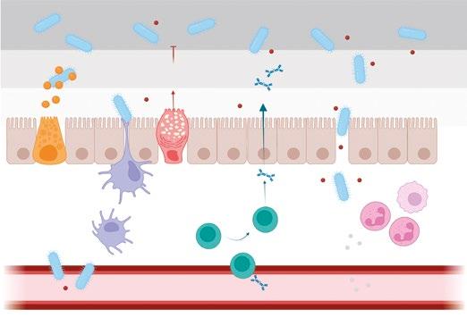 Además, cuenta con una gran cantidad de células inmunitarias presentes a lo largo de toda su pared, responsables del desarrollo y modulación de una función inmunitaria local que se traslada a nivel sistémico.
