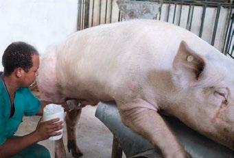O esquema da granja, hoje, fraciona a coleta de sêmen em duas vezes por semana. As coletas são realizadas às quintas-feiras e aos sábados.