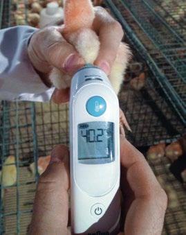 Verifique a temperatura corporal das aves rotineiramente na primeira semana, iniciando 2 horas após o alojamento.